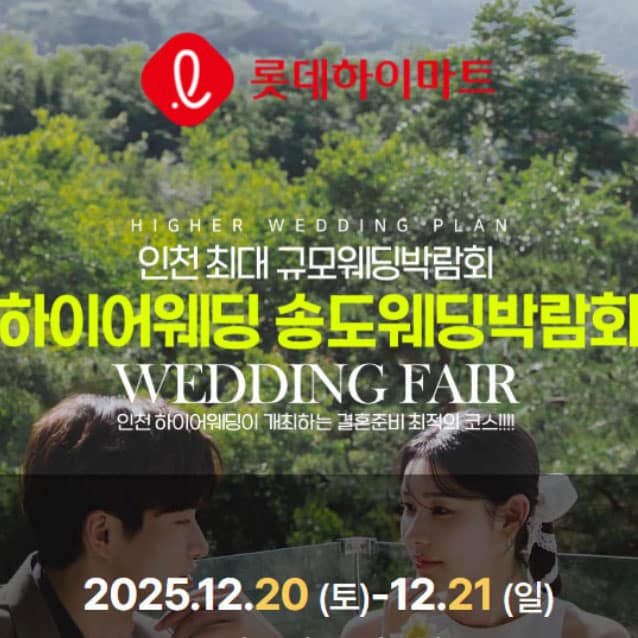 인천에서 열리는 초대형 하이어 웨딩박람회에 참여하세요! 저렴한 가격, 웨딩 혼수 최고의 혜택, 스드메 계약 현장 혜택 등의 혜택을 누리세요. 최저가 보장!