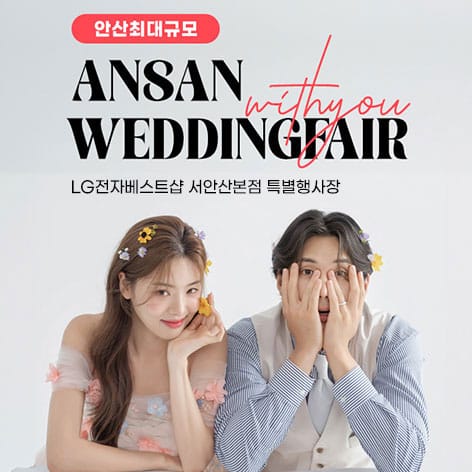 에서 열리는 안산 lg베스트샵 서안산본점 위드유 웨딩박람회에 참여하세요! 무료 업그레이드, 웨딩홀 계약 특전, 혼수 가전 특별 할인, 저렴한 가격 등의 혜택을 누리세요. 특별한 혜택 놓치지 마세요!